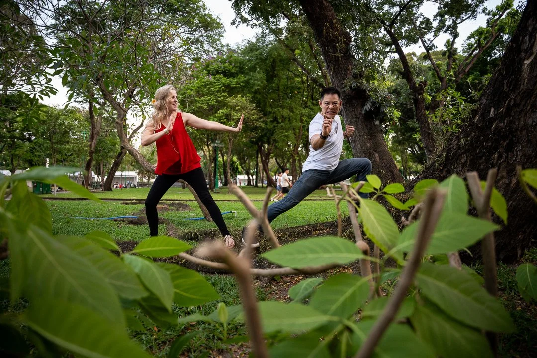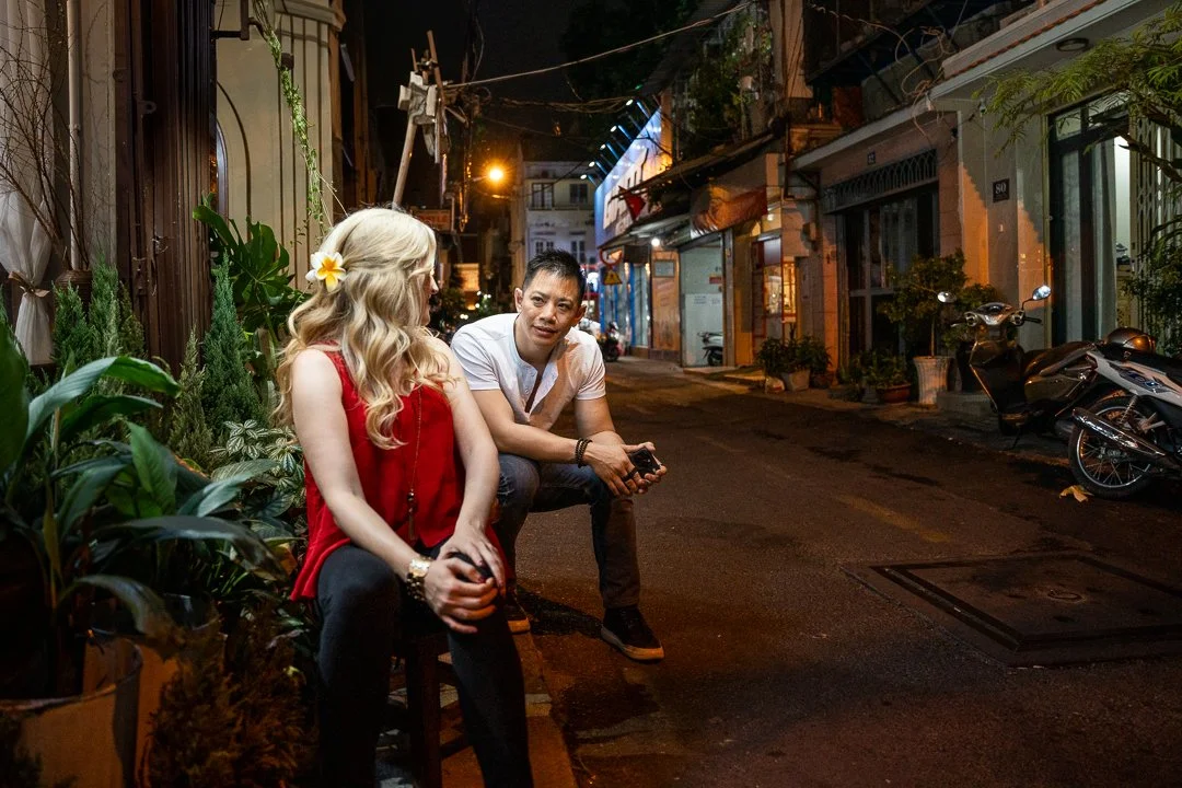 Mike currently lives in Saigon, Vietnam, and Kimberly is working in Uganda so when the two reunited in Ho Chi Minh City, Vietnam, I got to snap a few photos of them together. They were down for anything so we walked around a park, capturing them spending time together amid the tropical plants and bright colors. We then headed down the street for a street-side coffee, which in my opinion, is quintessential Vietnam.