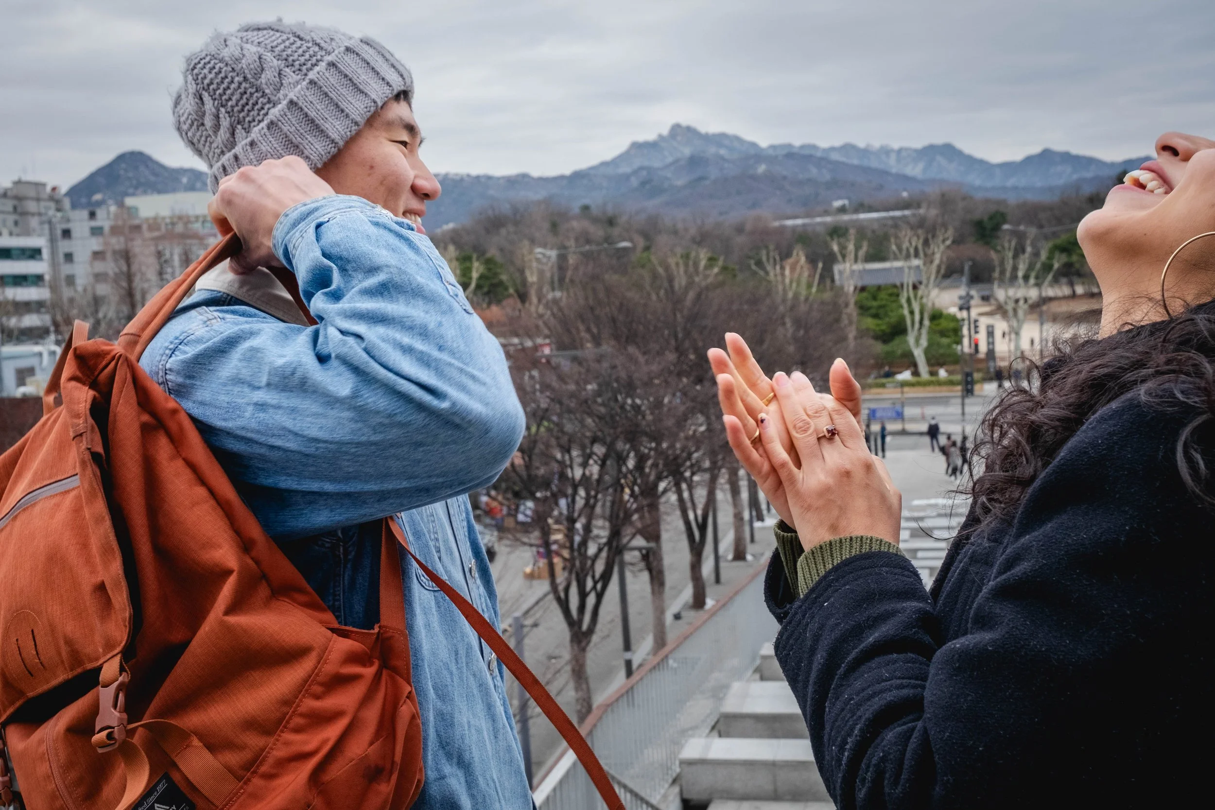 Priscilla and Jong met while they were teaching English in South Korea. Spending time with them is like watching your favorite tv couple. They will make you smile, laugh, blush, and just fill your heart with all the feels. Priscilla and I met when we were assigned seats next to each other on our first days in Korea. I was so thankful for those assigned seats that turned into a wonderful friendship. I then had the privilege of hearing all about her and Jong’s growing relationship as it happened. After hearing her gush and spending time with them together, I knew I had to get them for a couple’s shoot in Seoul, the city where they met, before they left.